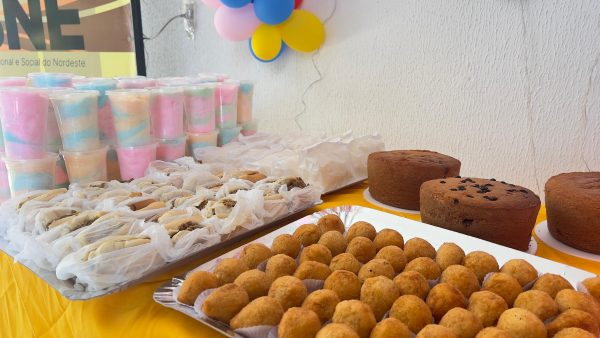 Um dos momentos mais esperados da manhã foi a hora do lanche, que contou com um cardápio pensado com muito carinho para agradar a todos os gostos: coxinha, cachorro-quente, algodão-doce, bolo, refrigerante, suco e água. Para encerrar o evento com chave de ouro, as crianças ainda receberam sacolinhas surpresas recheadas de guloseimas, garantindo sorrisos e lembranças doces desse dia tão especial.
