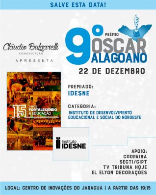 O Instituto de Desenvolvimento Educacional e Social do Nordeste (IDESNE) celebra mais uma conquista significativa em sua trajetória de impacto social e transformação educacional. No próximo dia 22 de dezembro, o instituto será homenageado no 9º Prêmio Oscar Alagoano, uma das mais respeitadas premiações do estado, que reconhece instituições, profissionais e iniciativas que contribuem para o desenvolvimento de Alagoas.