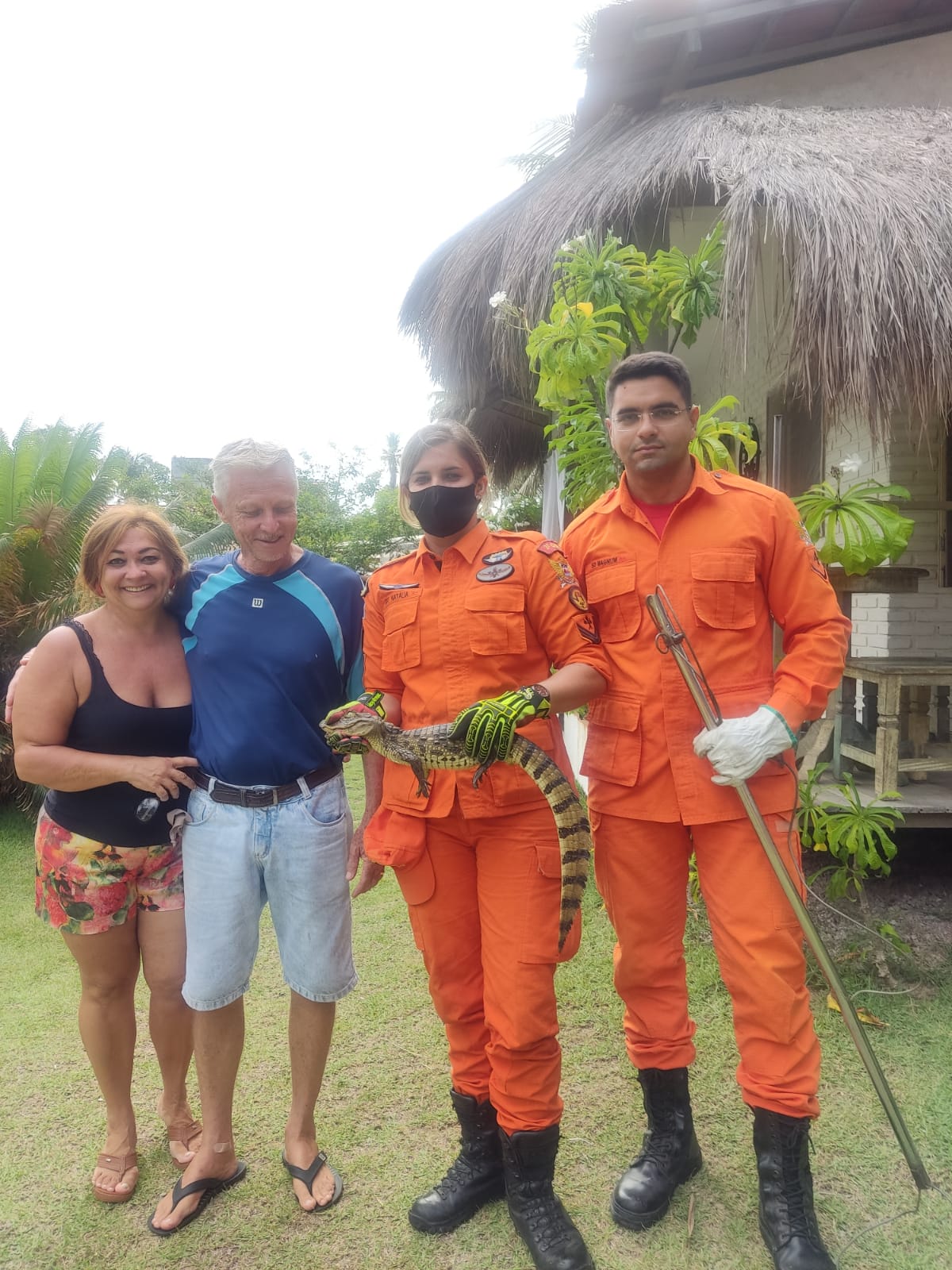 Militares do Corpo de Bombeiros Militar de Alagoas (CBM/AL) capturaram um jacaré em uma residência na cidade de Japaratinga, Litoral Norte de Alagoas, na tarde desta segunda-feira (14).