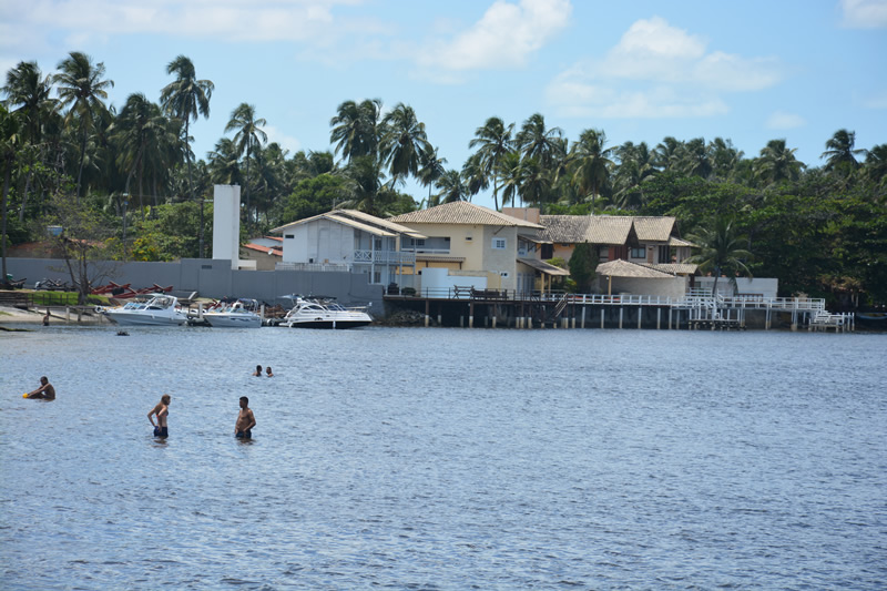 É possível também ver de perto a atividade pesqueira, que é a base de sustento de centenas de pessoas da comunidade. Sempre encontramos com pescadores lançando suas redes nas águas da Manguaba.