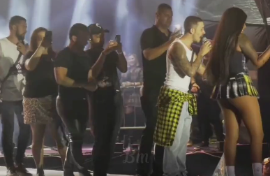 O humorista e seu marido, Lucas Guimarães, foram convidados ao palco para animar a plateia. Em certo momento, uma pessoa da plateia joga um objeto no palco, quase acertando Ludmilla.