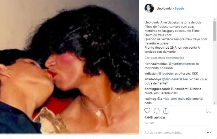 “A verdadeira história de dois filhos de Francisco sempre com suas mentiras né luciguey colocou no Filme que eu traia você. Quando na verdade sempre me traiu com travestis e gays. Pronto. Depois de 29 anos vou contar a verdade. Seu demônio”, escreveu Cleo em uma das publicações.