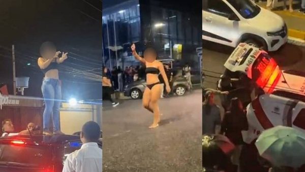 Em vídeos compartilhados nas redes sociais, a mulher estava, em primeiro momento, em cima do teto de um carro, e fazia gestos com as mãos com referência a uma arma de fogo, apontando para a multidão. Na sequência das imagens, ele estava apenas com roupas íntimas e andava de um lado para o outro.