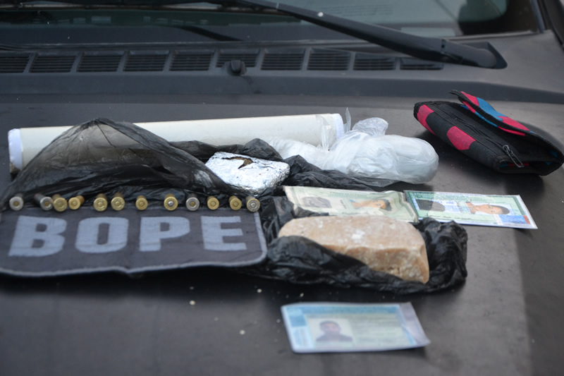 Os policiais acionaram o Batalhão de Operações Policiais Especiais (Bope), que conseguiu alcançar o veículo descrito e constatar que estavam com três revolveres calibre 38, drogas, balança de precisão e munições.