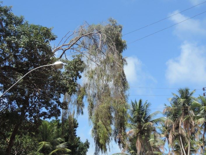 Aqui nas cajazeiras tem um coqueiro e uma mangueira caindo sobre a alta tensão. (prox. a mercearia da cida).