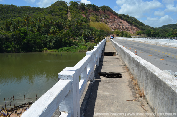 Depois do risco de desabamento das cabeceiras da ponte que dá acesso ao Pólo Industrial de Marechal Deodoro pela BR 424, após o último período de chuvas intensas, funcionários do DER trabalham para recuperar os pilares de sustentação da mesma.
