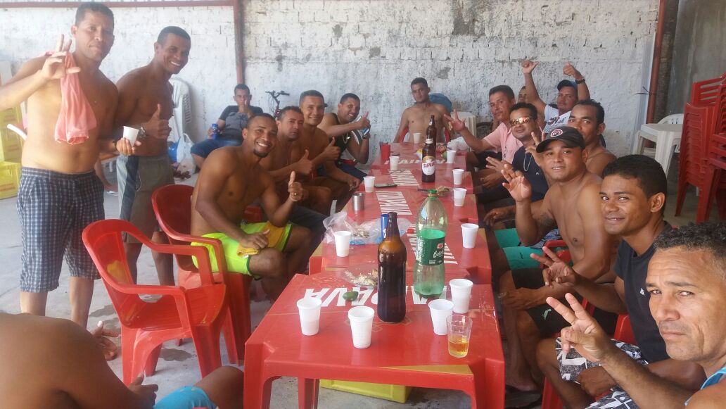 O zagueirão reuniu os amigos para um racha no Society do Zezinho. Em seguida ofereceu um churrasco aos participantes do evento.