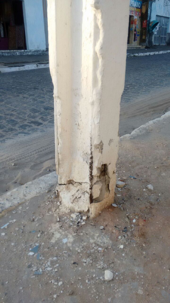 Um poste da rede de iluminação pública que fica no Barro vermelho, próximo ao “Manoel Cipriano”, vem deixando os moradores temerosos com a possibilidade do mesmo cair.