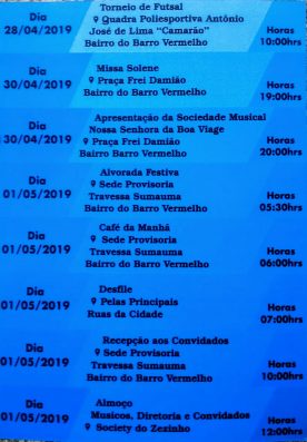 A direção da SMNBV convida os deodorenses para participar dos festejos, que se encerram na próxima quarta-feira.