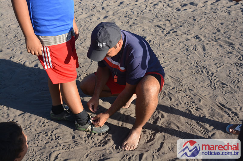 São dezenas de crianças que participam de uma escolinha de futebol em um campo de areia, comandada por um voluntário que é morador da comunidade. De acordo com Del, mesmo com as dificuldades encontradas para levar o projeto adiante, é uma satisfação trabalhar com as crianças e adolescentes através do esporte.