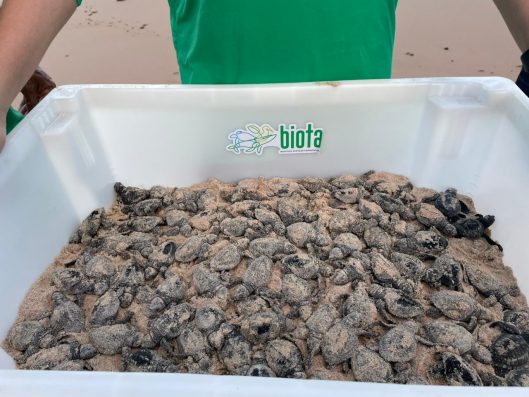 Na tarde dessa sexta-feira (3), 85 filhotes de tartaruga-oliva (Lepidochelys olivacea) foram soltos na Praia de Guaxuma, na região Norte de Maceió. A ação foi coordenada pelo Instituto Biota de Conservação, e marcou a primeira soltura da temporada reprodutiva de tartarugas marinhas na capital alagoana.