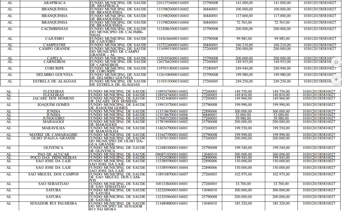 Cidades como Satuba, Flexeiras, Jundiar, Branquinha receberão mais de um repasse, conforme a portaria.