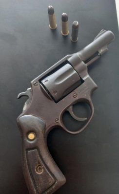 Após abordagem, o suspeito confessou o crime e disse ter escondido a arma do crime, um revólver cal.38, dentro de uma planta, sendo a arma localizada em seguida.
