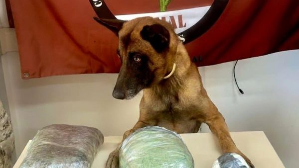 De acordo com informações da Polícia Militar, durante uma abordagem, o cão farejador percebeu a presença dos entorpecentes dentro da bolsa que estava na última fileira de assentos do veículo.