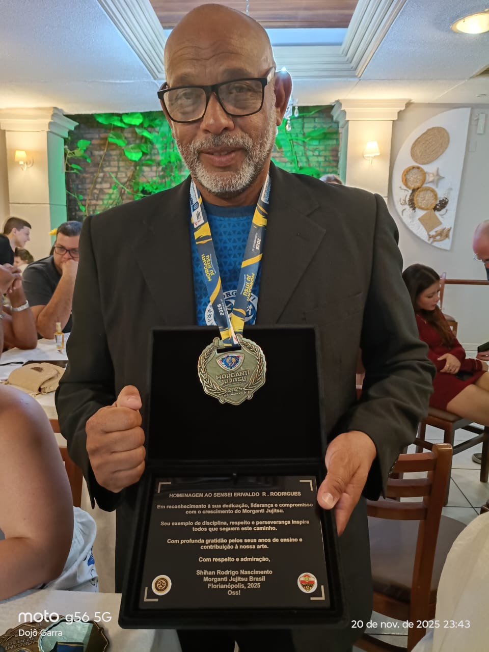 Além disso, durante o campeonato, o Sensei Erivaldo foi homenageado pelos seus feitos e dedicação para divulgar o esporte em Alagoas. Essa homenagem é um reconhecimento à sua liderança, compromisso e contribuição para o crescimento do Morganti Ju-Jitsu.