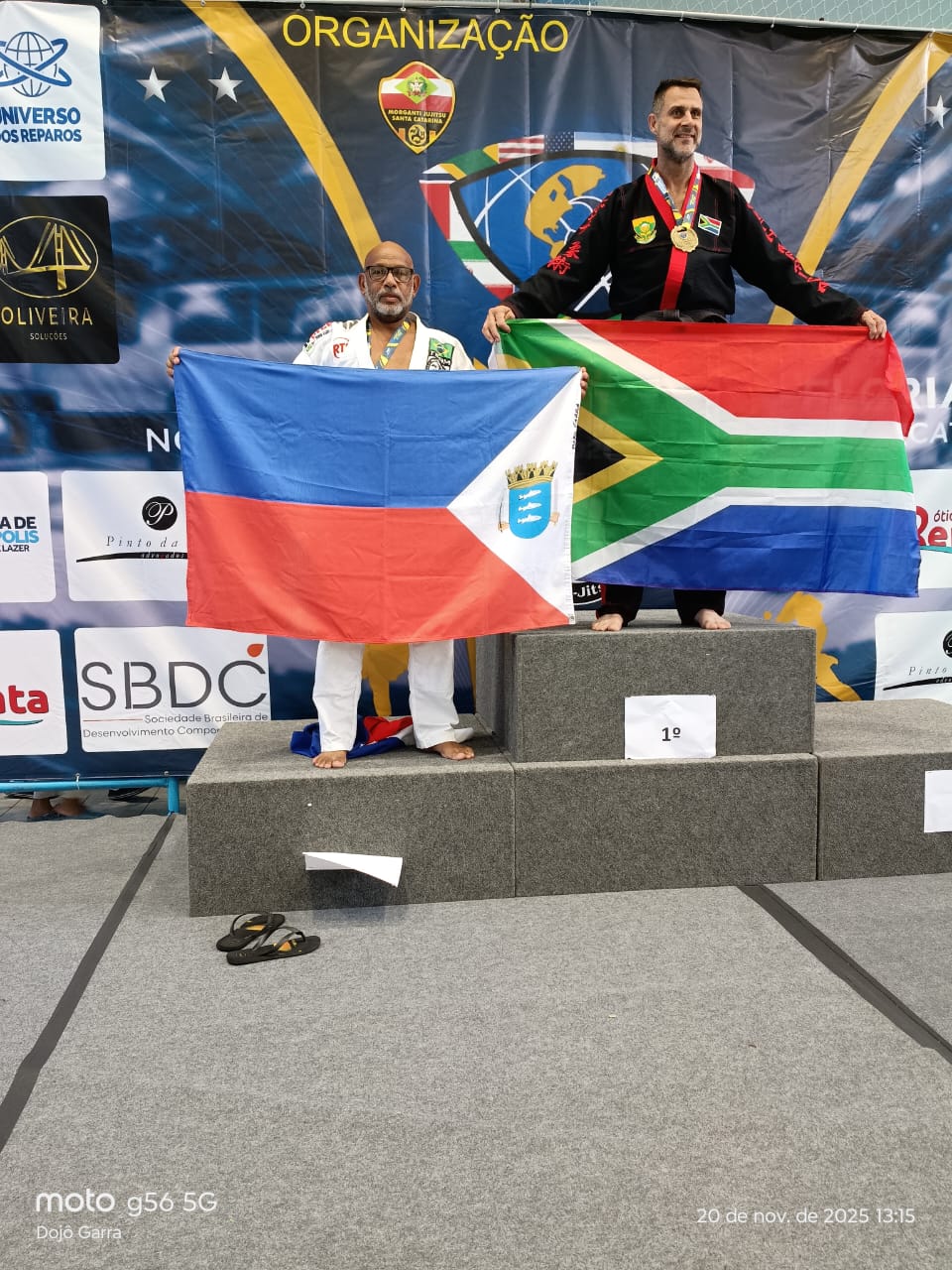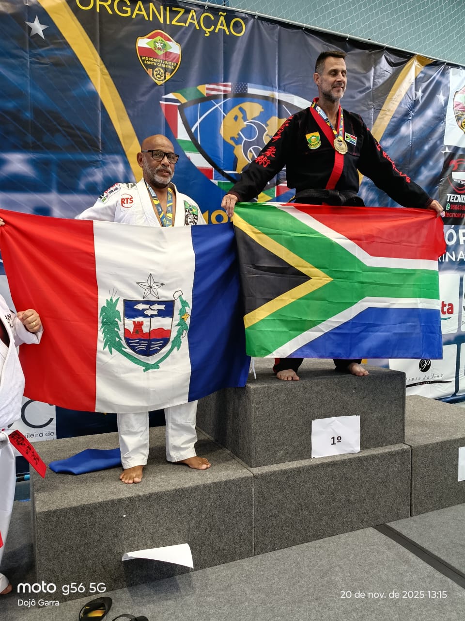 Com a presença de países como o Canadá e a África do Sul, o campeonato foi um desafio enorme para o nosso representante, que enfrentou lutadores de alto nível. Mas o Sensei Erivaldo não se intimidou e lutou bravamente (com o representante da África do Sul), conquistando a medalha de segundo lugar na categoria Masters + 50.