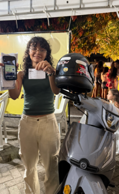 Como anunciado pela campanha “Quem ganha o presente é você”, o instituto realizou o aguardado sorteio de uma moto Shineray 0km. Entre centenas de corações ansiosos, a sorte sorriu para a jovem Natally Rocha.