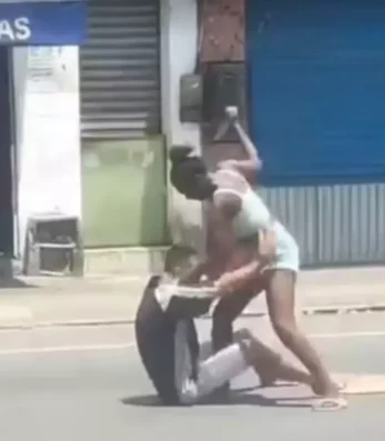 Nas imagens compartilhadas nas redes sociais, dá para ver o momento em que a suspeita partiu para cima da vítima com uma faca.