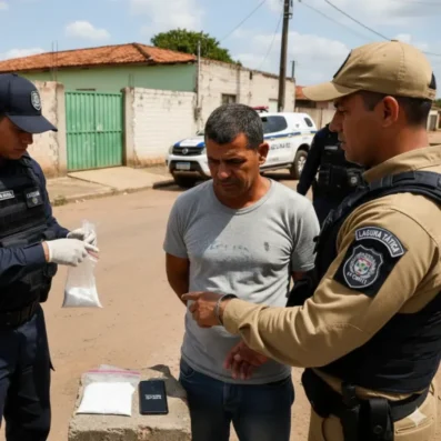 Um homem de 35 anos foi detido na tarde desta sexta-feira dia 30 de janeiro de 2026 no bairro Botafogo, em Marechal Deodoro, sob acusação de tráfico de drogas. A ação foi desencadeada por equipes da 4ª CPM/I, incluindo a Guarnição Motorizada Laguna Tática, com apoio da Laguna 02 e da equipe de inteligência, que estavam em deslocamento para o cumprimento de um mandado de busca e apreensão.