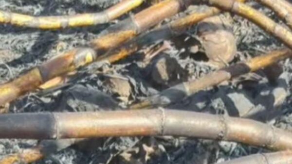 A informação foi confirmada pela Polícia Militar. Em uma foto, é possível ver o crânio e outros ossos, em meio aos pés de cana no chão da área de plantio. Ainda não há detalhes sobre a identidade da vítima.