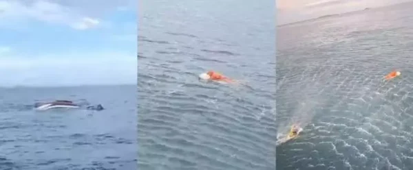 Não há informações sobre a causa do naufrágio, mas os bombeiros trabalham com a hipótese de que ele tenha relação com as tempestades que atingiram a região. Vídeos gravados pelas equipes de resgate mostram o homem agarrado à porta da geladeira e a embarcação virada.