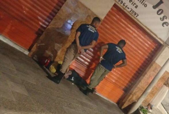 A Polícia Militar (PM) foi acionada via COPOM e, ao chegar ao local, encontrou o suspeito caído no chão com graves ferimentos na região da cabeça.