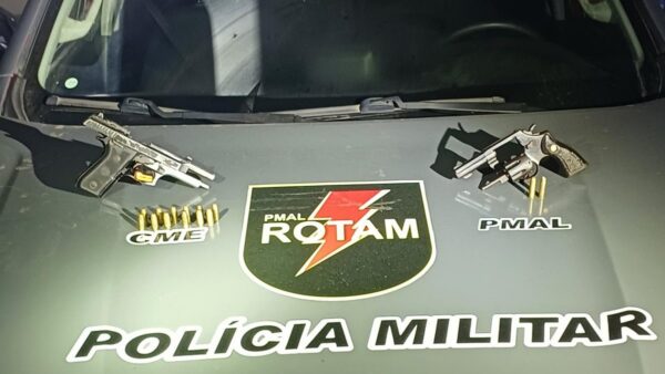 Equipes do Batalhão de Rotam da Polícia Militar de Alagoas prenderam um casal por porte ilegal de arma de fogo na madrugada deste sábado (14), em Maceió. A ação ocorreu na Avenida Durval de Góes Monteiro, após as guarnições receberem informações de populares sobre um veículo trafegando em alta velocidade e fazendo manobras bruscas.