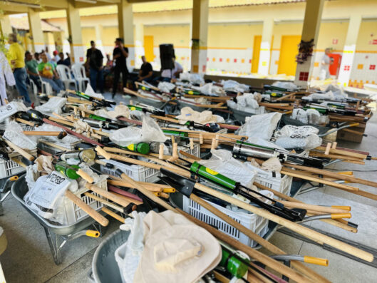 Ao todo, foram entregues 100 kits da agricultura familiar, destinados aos agricultores do projeto Merenda da Terra e produtores em geral, além de 20 kits para apicultores, incentivando a produção de mel, a preservação ambiental e a geração de renda.